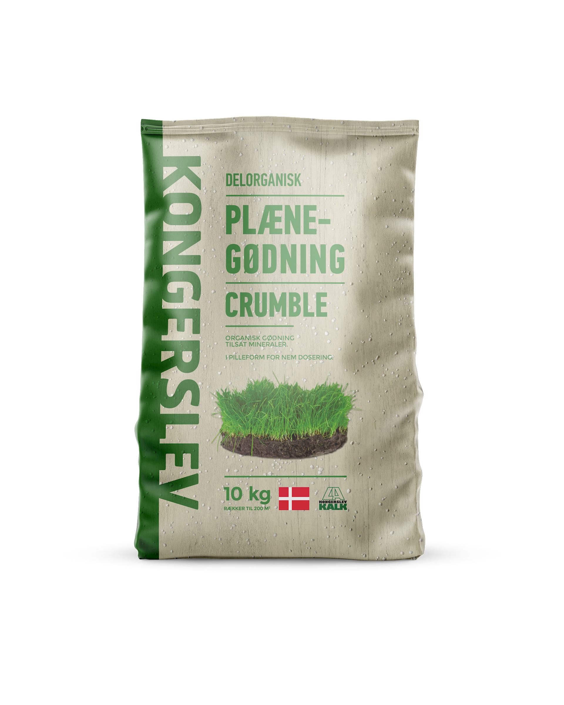 Kongerslev Plænegødning "Crumble" NPK 12-3-5 er en delorganisk pelleteret fjerkræsgødning tilsat mineraler.