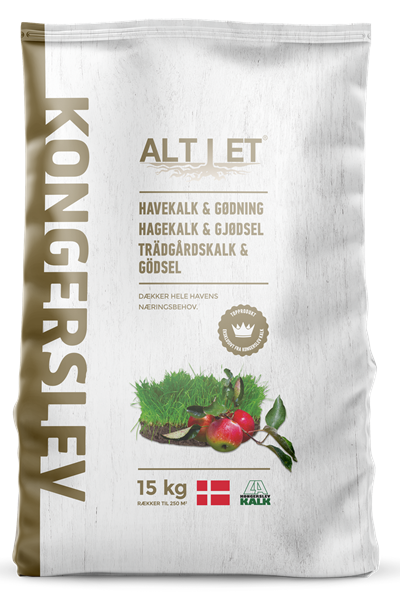 Kongerslev ALT I ET Havekalk og Gødning NPK 14-3-10 er særdeles velegnet til græsplænen, idet græsset styrkes med et kraftigt rodnet og et flot grønt og tæt græstæppe. Produktet, som er klorfattigt, kan med fordel også anvendes i