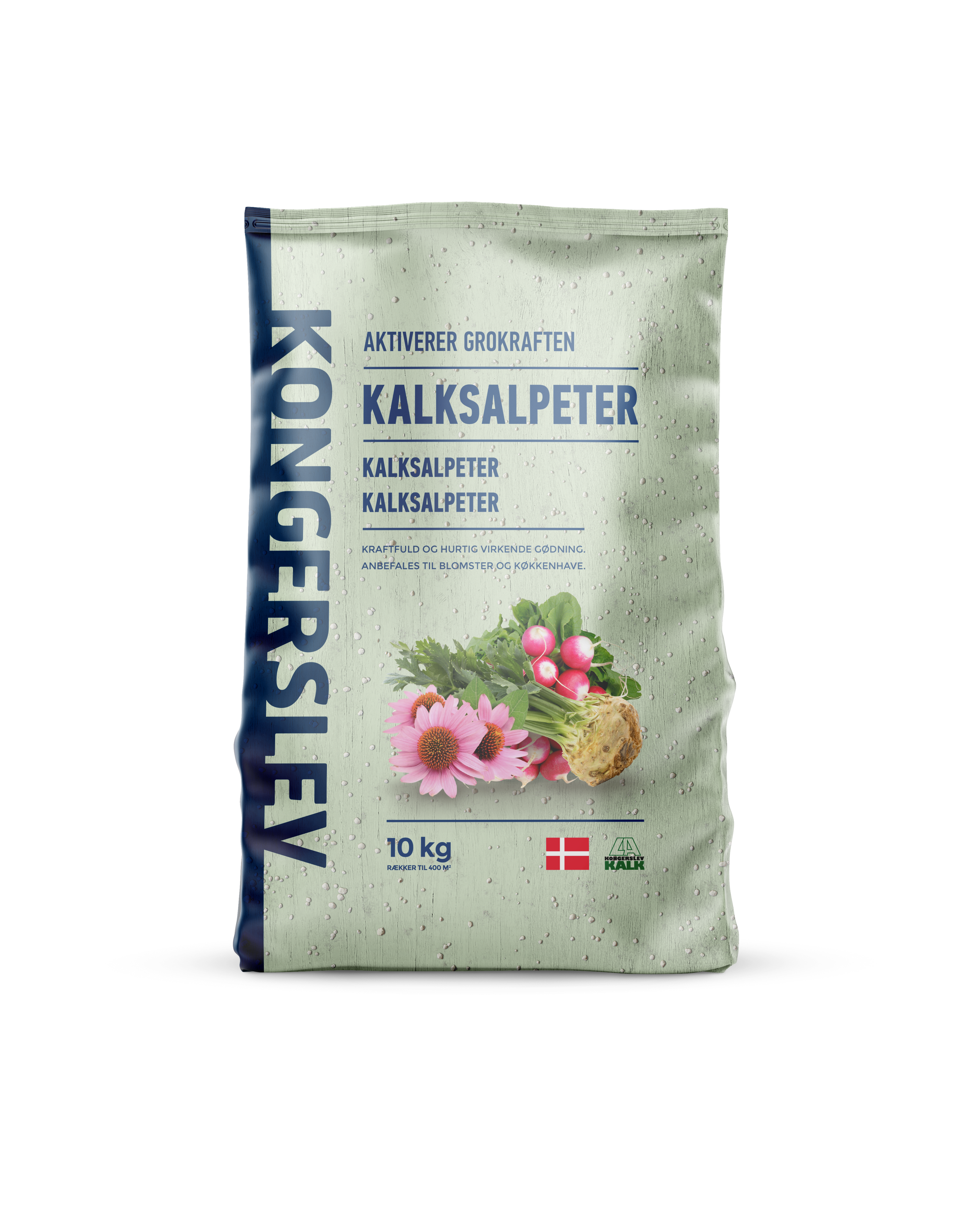 Kongerslev Kalksalpeter N 15,5 % fremmer både græsvækst, planterne i køkkenhaven og blomsterne i prydhaven. Kalksalpeter er en rigtig ”booster” - derfor anbefaler vi at bruge den som et starttilskud i begyndelsen af sæsonen.